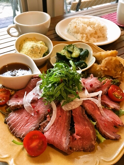 特製ローストビーフをお好きなソースでどうぞ☆ ソースは、①シャリアピンソース(和風おろし玉ねぎ)②ホースラディシュソース(西洋ワサビと本醤油)数量限定のちょっと贅沢ランチです♪